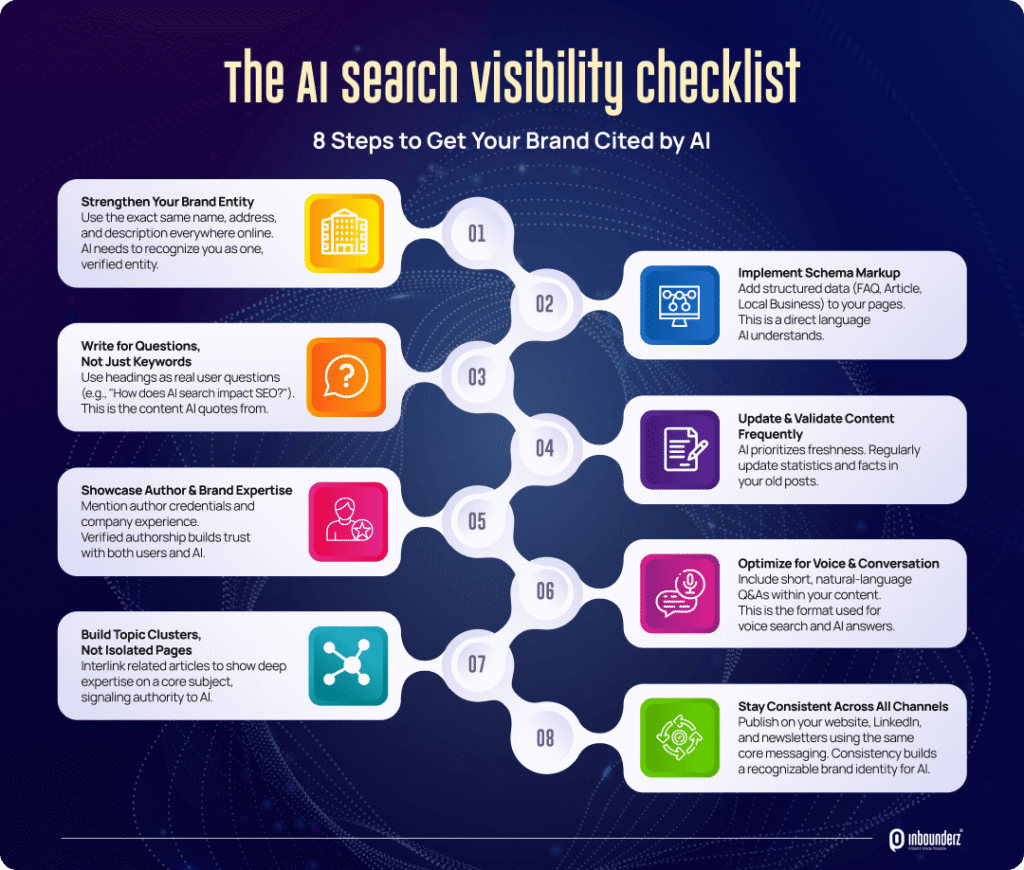 What This Means for Marketers: Visibility in AI search is built on clarity and credibility. Your goal is to make answers easy for machines to read and trust.